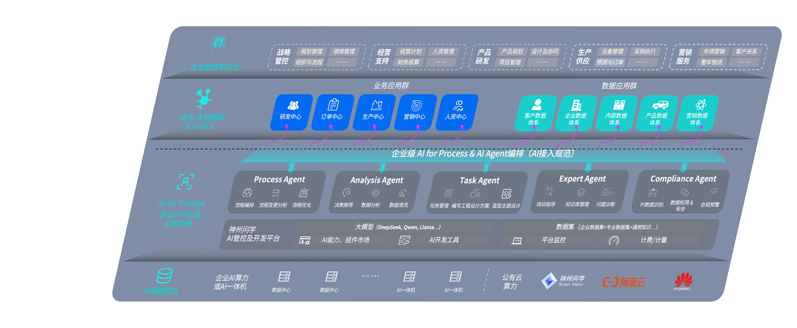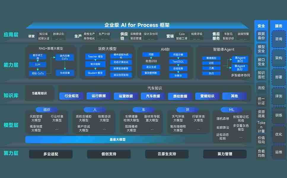 端到端的一站式AI工作空间深度融合了从企业战略规划到日常经营的全流程业务板块,,,定向解决车企内部领域多、、、、部门多、、、链条长、、、、场景碎片化等难题,,,支持车企快速构建以AI为核心的生产力写作体系,,,实现任务执行与AI能力的无缝集成与交互